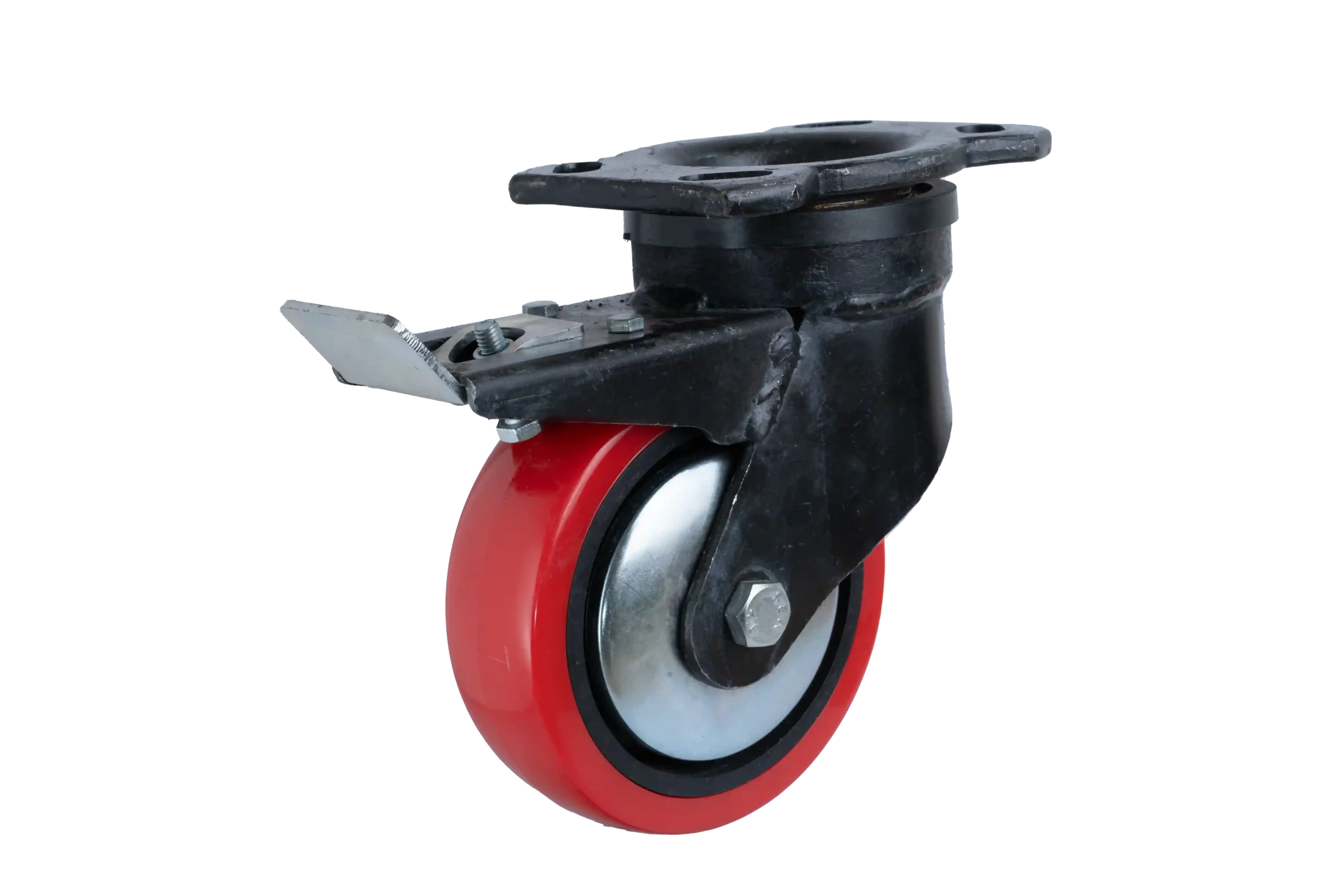 Enhance your equipment with our 6″ Red Polyurethane Wheel with 2-inch Width, Swivel, and Integrated Brake on Heavy Duty fabricated Steel Castor—designed for smooth, flexible, and secure movement in demanding industrial environments. The 6-inch diameter and 2-inch width ensure optimal load distribution, providing smooth and stable movement even under heavy loads. The red polyurethane tread offers exceptional wear resistance and non-marking properties, protecting floors while ensuring long-lasting performance. The 360° swivel mechanism allows for effortless directional changes, providing superior maneuverability, especially in tight spaces. Equipped with an integrated brake, this castor securely locks both the wheel and swivel, providing added safety and stability when stationary. Built with a heavy-duty fabricated steel core, this castor delivers outstanding strength and load-bearing capacity, making it perfect for heavy-duty applications. Ideal for carts, trolleys, and industrial equipment, this swivel castor with brake combines reliability, security, and floor-safe operation for optimal performance.
