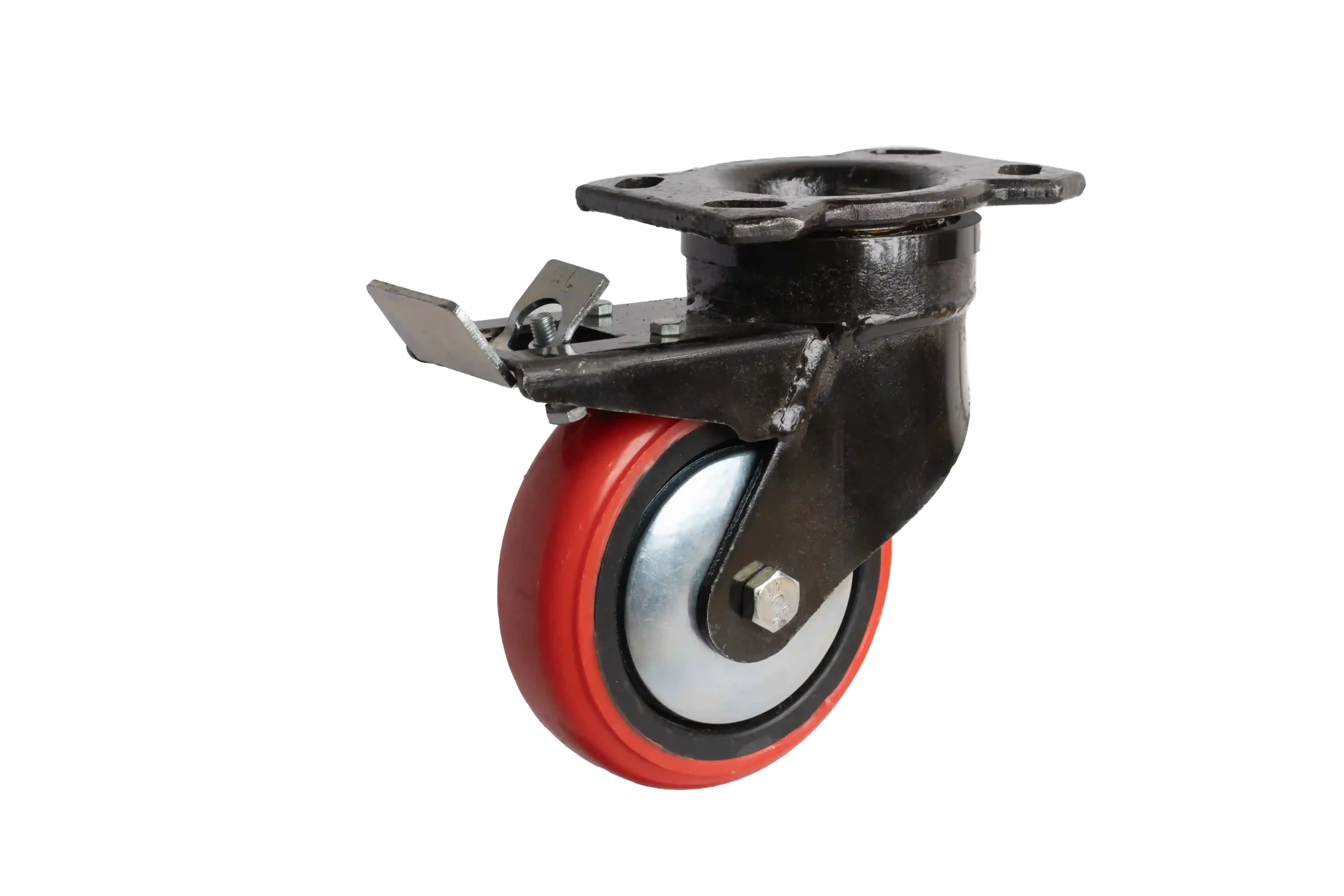 Achieve ultimate control and durability with our 8″ Red Polyurethane Tapered Wheel with 2-inch Width and Heavy Duty fabricated Steel Castor with Swivel and Integrated Brake. Engineered for heavy-duty industrial performance, this castor features a tapered red polyurethane tread bonded to a fabricated steel core, delivering outstanding strength, stability, and wear resistance. The 8-inch diameter and 2-inch width offer excellent load distribution and smooth rolling under heavy loads. The 360° swivel mechanism allows for precise maneuverability, while the integrated brake system securely locks both the wheel and swivel, ensuring maximum safety when stationary. The tapered tread design minimizes rolling resistance and enhances directional tracking, making it ideal for equipment that demands strength, mobility, and control. Perfect for carts, industrial trolleys, and machinery, this swivel brake castor is built to perform in the most demanding environments.