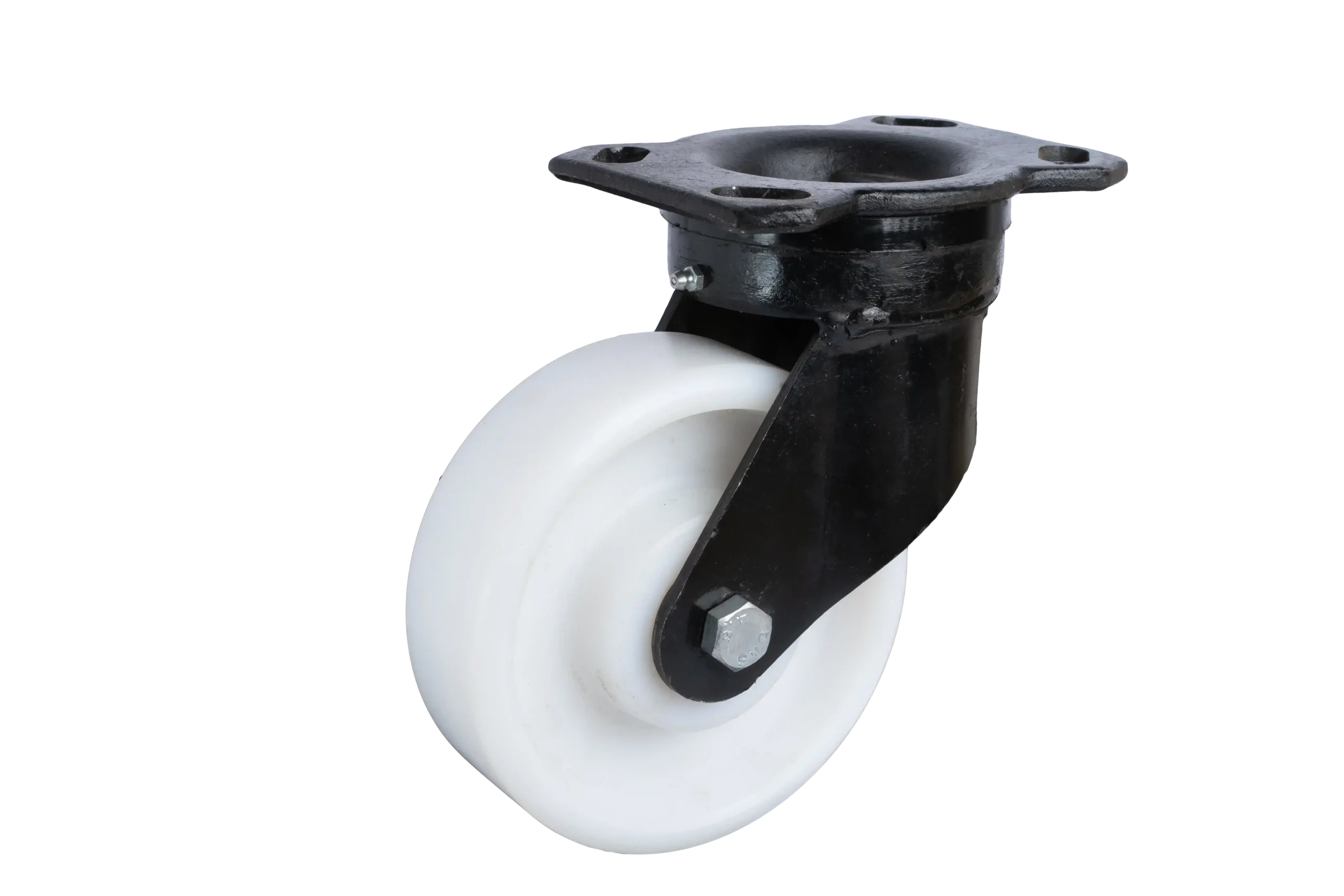 Designed for maximum flexibility, this swivel UHMW polymer I-Type wheel with heavy-duty forged steel castor allows for smooth 360° rotation in tight spaces. Its heavy-duty construction offers excellent load-bearing capacity and wear resistance, making it ideal for industrial equipment and automated systems. The I-Type design ensures accurate tracking and consistent movement. Built to handle continuous operation and heavy loads.